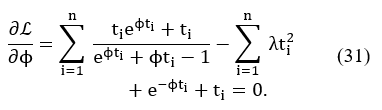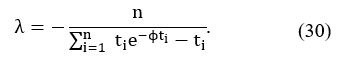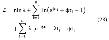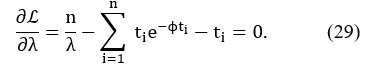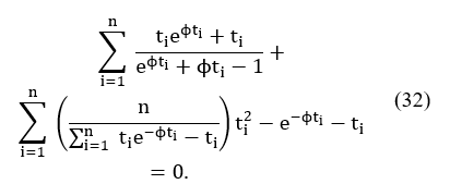 Proof. Given a random sample t1, t2, …, tn, the maximum likelihood estimators of the NTA lifetime density function with parameters (λ, ϕ) are obtained by finding