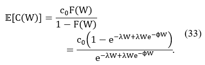 Suppose the failure times of a product follow the NTA distribution with parameters ϕ = 0.015. In addition, we consider that the manufacturer’s cost c0 for the given product equals unity. The warranty cost for renewing the free replacement warranty for a period of W is given by