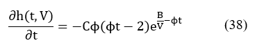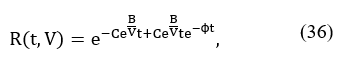The Arrhenius relationship is a physics-based model derived for the temperature life dependence, V, in Kelvin. It is a widely used model to relate the product life and temperature [3]. In Equation (34), C is a nonthermal constant that depends on geometry, size, fabrication, and other factors. It is determined experimentally, and deals with the frequency of molecules that collide in the correct orientation to initiate a chemical reaction. Parameter B is the relationship between the activation energy and Boltzmann Constant. The activation energy deals with the magnitude of the effect of the stress on the component. The details can be found in [3] and [1].