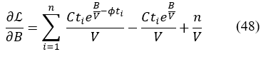 Estimators for B and ϕ are not analytically available. Their approximations are given by the numerical solution of the nonlinear Equations (48) and (49), respectively.