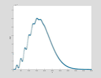 Figs. 1 and 2 depict the approximation of the Neyman type-A probability function via the Fourier Series. The local peaks at 0,25,50,76,103,129,153 and 173 for the parameters λ = 7 and ϕ = 25 which highlight the multimodality of the distribution, were discussed by [31].