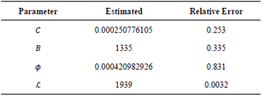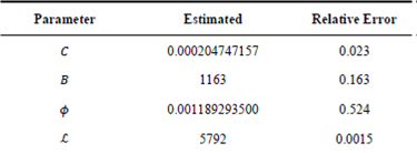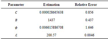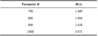 In the following tables, we present the estimated parameters and value of the log-likelihood function. Notably, the relative error decreased as the sample size increased. The true parameters are by V = 300, C = 0.0002, B = 1000 and ϕ = 0.0025. The expected number of failures in an interval of time is calculated using the renewal process, which is associated with the distribution function F(t) = 1 - R(t). M(t) given by