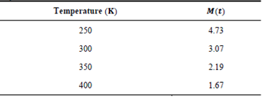 Lower values of C and ϕ had a greater influence on the effect of temperature on the life of the component. When fixed, the parameters were C = 0.002 and ϕ = 0.0025.