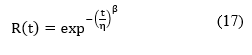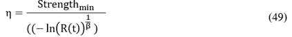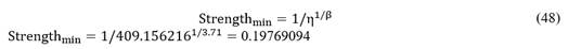 The parameter that represents the Weibull distribution family is given by W~(β = 3.71080717, η = 409.1562166). Then, these Weibull parameters are the stress distribution parameters (see Table 1).