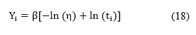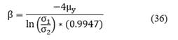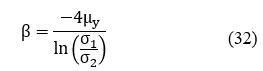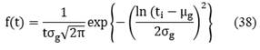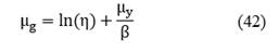 With log-mean μg and log-standard deviation σg parameters, thereby because both μg and σg [44] the log-normal distribution's parameter connection in terms of β and η is given by