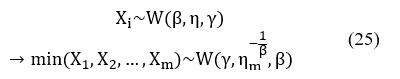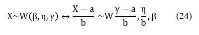 This implies that while the shape parameters are kept unchanged, the transformation constants a and b are given new scale and position parameters in relation to their former values. In other words, assuming the scale and position parameters stay the same, the converted variable is likewise a Weibull random variable. Their resilience to the most straightforward random variable manipulations, Xi = 12, …, m, demonstrates their independence and uniform distribution.