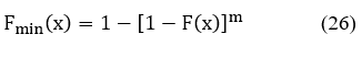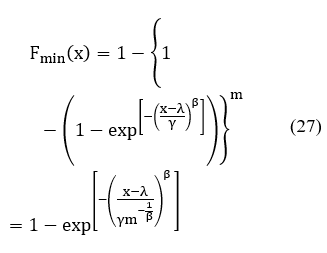 This shows that a random variable's distribution is the same as a collection of independently distributed random variables if it is a Weibull variable. There is a minimum with a collection of identical random values Xi through Xm that are independently distributed and have a common Cdf F(x).