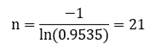 Step 1. The desired reliability index according to the data is 95%, however, to have an integer n value the reliability level to use will be equal to R(t) = 0.9535.