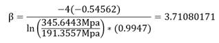 The β value of step 5 and the η value of step 6 corresponds to the Weibull parameters that represents the observed stresses σ1 and σ2 values.