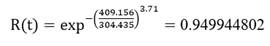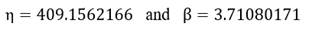 Table 1: Weibull β = 3.710802 and η = 409.156