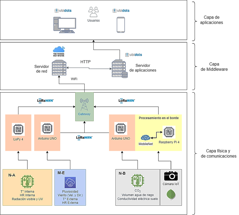 Arquitectura de la plataforma de agricultura inteligente implementada.