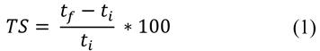 Where: TS is the thickness swelling 24h (%); ti is the initial thickness of the specimen (mm) and tf is the final thickness of the specimen (mm).