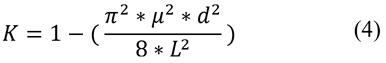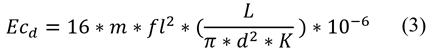 Where: Ecd is the dynamic compression modulus of elasticity (MPa); fl is the mean of three consecutive measurements of the longitudinal resonance frequency (Hz); d is the mean diameter of the specimen (mm); L is the mean height of the specimen (mm); K is the correction factor calculated using eq. (4).