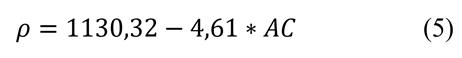 Where: ρ is the density (kg/m³) and AC is the ash content (%). The correlation between the density and the ash content is 34,99%