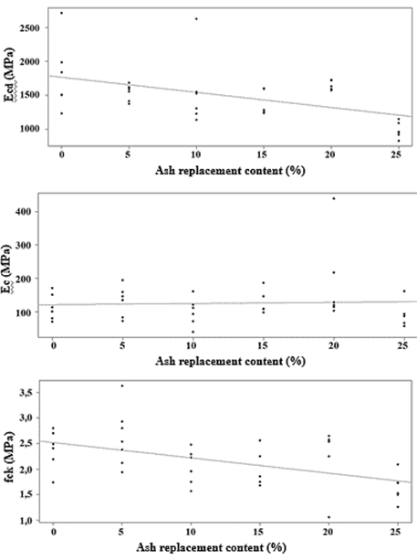 Figure 4: Chart of mechanical properties as a function of ash replacement content.