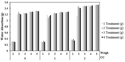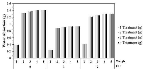 Table 8: Averages of the percentages of weight gain between the weighing carried out in the four commercial starch and pulp treatments.