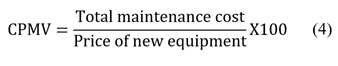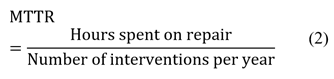 Availability: This indicator evaluates the condition of the equipment to fulfill its function based on the mean time between failures and maintainability as follows:
