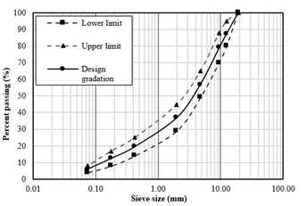 Figure 2: Working gradation for mixtures type MCD-19 according to article 450-13 INVIAS
