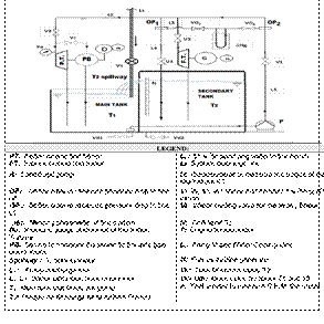 In the schematic diagram shown in Fig. 1, the water required for the operation of the low power electric generator bench (Kaplan turbine), is supplied through line L1 and is controlled by valve (V1), both are located in the top of the flow stabilization tower (FST). The flow stabilization tower contains a flow vertical line (Ld), which is open to the atmosphere and is used to release air masses trapped in the ductwork during filling and testing on the Kaplan turbine bench.