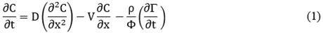 Donde el término se expresa mediante la isoterma de Freundlich y r es la tasa de desorción. El fenómeno de desorción puede ser representado mediante las ecuaciones (1) y (6), teniendo en cuenta que se considera nulo el valor del coeficiente de dispersión y por lo tanto no se incluye. Para solucionar la ec. (6) se utiliza una aproximación numérica que representa el nivel de adsorción en función del tiempo como se muestra en la ec. (7).