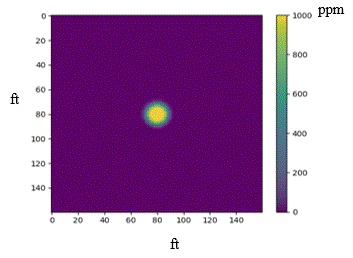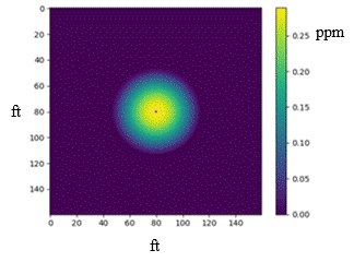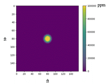 Figura 8: Distribución areal de la concentración de inhibidor durante la etapa de Pre-flujo, (distancias en ft)