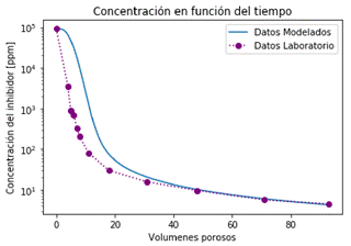 Figura 6: Modelamiento de la desorción de inhibidor a nivel de campo (Residuales de inhibidor para flujo radial).