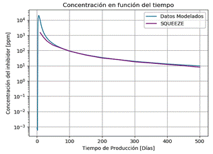 El modelo presentado es fundamental para el correcto diseño de un tratamiento squeeze, ya que permite evaluar parámetros operacionales como tasa de inyección, caudal de producción, cantidad de inhibidor a inyectar y concentración optima del tratamiento.