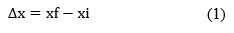 Displacement calculation. The displacement of a body is defined as the difference between its final position (xi) and its initial position (xf). In simple terms, the displacement represents the total amount that the body has moved from its initial position (xi) to its final position (xf) [12].
