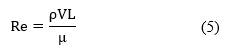 Reynolds number calculation. The Reynolds number (Re) is a dimensionless parameter used to relate inertial forces to viscous forces, which allows determining the flow regime in which a system is found, either laminar or turbulent. In microfluidic devices with rectangular cross section, the calculation of the Reynolds number is performed considering the average volumetric flow rate of the device [17].