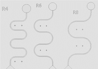 Table 1: Overall dimensions of curved micro channels with r4, r6 and r8.