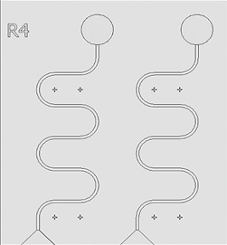The calculation of volume and radius in curved microchannels is crucial to understand the flow behavior. Volumes were calculated for different radius (4 mm, 6 mm, 8 mm), fundamental to evaluate the efficiency of the system. Figs. 2, 3 and 4 shows the design devices with radius variation along the channel.