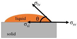 Figure 5: Illustrative diagram representing the contact angle of a fluid drop on a solid surface.[16].