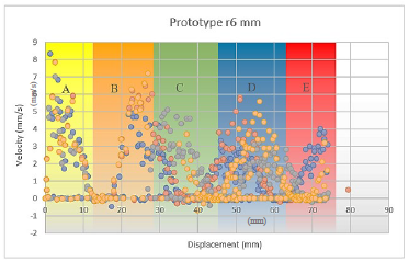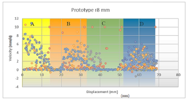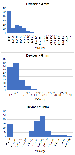 Figure 8: Velocity histograms (mm/s) radio 4, 6 and 8 mm.