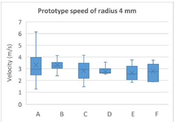 Figure 12: Box and whisker plot of the speed of the 4 mm radio prototype.