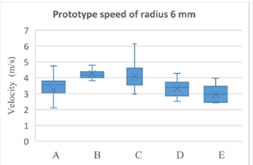Figure13: Box and whisker plot of the speed of the 6 mm radio prototype.