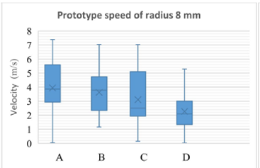 Figure14: . Box and whisker plot of the speed of the 8 mm radio prototype.
