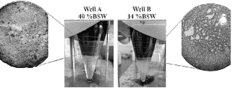 Table 5 presents the compatibility results for the crude oils from wells A, B, and synthetic formation brine. For well A crude oil, regular compatibility is observed at any of the proportions. In the case of well B crude oil, only regular compatibility is seen between fluids at proportions of 20% crude: 80% synthetic brine and 50% crude: 50% synthetic brine.