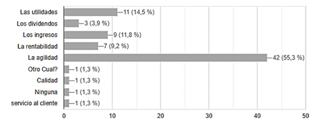 Se ha presentado una mejora significativa en la agilidad de la toma de decisiones en la organización o en la profesión desde la implementación de la inteligencia artificial (IA). Esta mejora se ha observado principalmente en la gestión (39.5%), las decisiones financieras (15.8%), el marketing (32.9%), las decisiones de inversión (6.6%) y las decisiones gerenciales (5.3%).