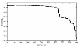 Comparing the classification results obtained using the super vector machine from the original image and the images from the multiscale representations (Table 1), it can be seen that the accuracy increases with the latter. The best accuracy can be found in all scales from the nonlinear diffusion representation (Fig. 2(a)), and in the first 700 iterations in the binary partition tree representation (Fig. 2(b)). Scale three and four is where the best accuracy was achieved for nonlinear diffusion representation (98%). For the binary partition tree representation, the best accuracy was achieved in the 120th iteration (95.1%). Table 2 shows the accuracy improvement using the nonlinear diffusion representation. Although the binary partition tree has a better overall performance than the original image, one class is not detected by this method: BPT loses grass pasture mowed.