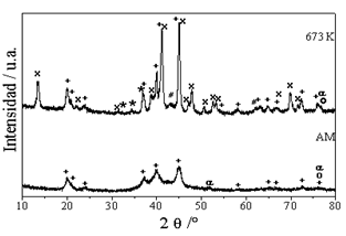 La evolución de las fases durante la molienda fue estudiada por difracción de rayos-X (DRX) en un difractómetro Shimadzu XDR-6000 usando radiación Cu-Kα. El tamaño de los cristalitos se determinó mediante la ecuación de Scherrer [10]. El tamaño del polvo, la morfología y homogeneidad química se estudiaron utilizando un microscopio electrónico de barrido (SEM) Zeiss Evo/MA 10. La estabilidad térmica de los polvos se estudió por medio de calorimetría diferencial de barrido (DSC) en un DSC 2929 TA Instrument. El barrido de temperatura para todas las muestras fue de 300 a 773 K, usando una velocidad de calentamiento de 10 K/min bajo un flujo de nitrógeno de 80 ml/min.