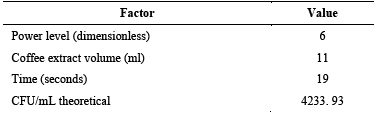 Table 1: Statistical design of response surface using microwave heating in coffee liquid extracts.