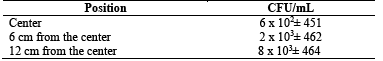 Table 8: Effect of the position of the container in the microwave on the inactivation of Bacillus licheniformis using microwaves