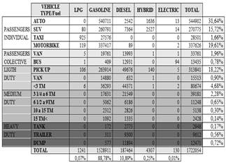 Table 2 shows the Ecuadorian vehicle fleet by energy source and vehicle type; it is important to specify that less than 1% of the vehicles differ in energy source from diesel or gasoline.