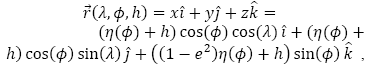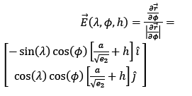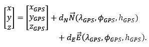 The objective is to find unit vectors to direct displacements dN and dE and transform them to the form (2). According to [20], the rectangular coordinates for GPS can be obtained from a function of ellipsoidal parameters as