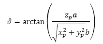 where e2 is the first eccentricity of ellipsoid, and a is the minor semi-axis parameter of the WGS84 standard. Notice that and