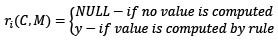 here: C - context of current execution path; M - a system model; y is a computed result value, and NULL is returned if rule doesn’t apply.
