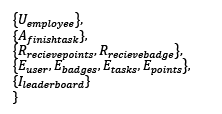 Entities: E user - all system employee, E Badges - types of badges, E Tasks - the tasks which can be completed by employees, E Points - points gained by the users.