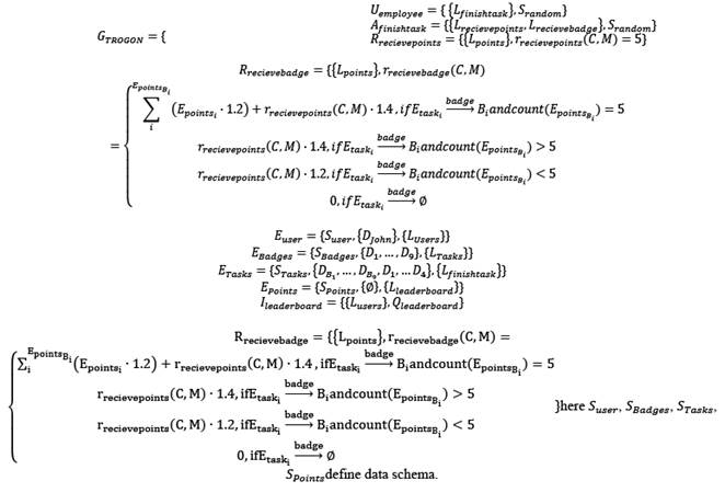 For the illustration of gamification modelling, we have selected the Trogon Project Management System (PMS) already discussed in our previous work [29,30]. Here we demonstrate how gamification rules can be described and modelled using the proposed UAREI model as well as depicted graphically using the proposed graphical notation. The gamification solution for Trogon PMS is defined as follows: