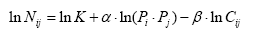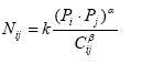 Uno de los modelos más utilizados son los Modelos Gravitarios [23]. El flujo Nij entre dos zonas i y j, es proporcional a la generación (población) de la zona origen i, a la atracción (población, empleo, etc.) de la zona destino j y decrece con la distancia que les separa o coste de transporte