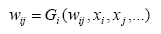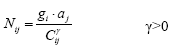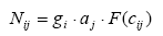 F(cij) : función decreciente de la fricción, dificultad o coste de relación entre i y j.